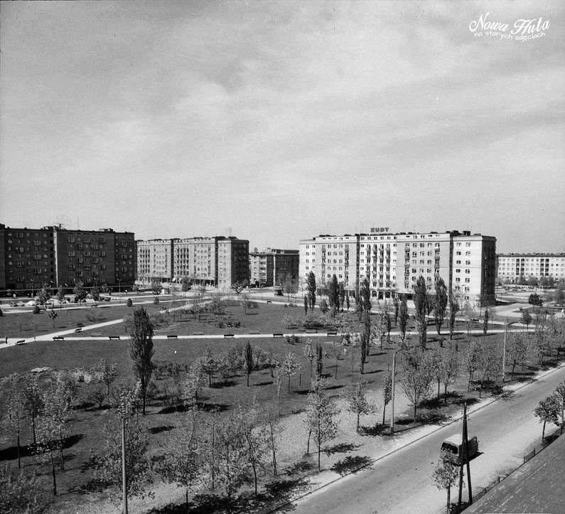 Nowa Huta – północno-wschodnia część Krakowa; zaprojektowane od podstaw miasto, którego budowę rozpoczęto w 1949 roku.
